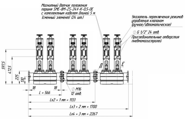 Клапанная коробка оснащена пневматическим исполнительным механизмом двустороннего действия с ручным дублирующим механизмом.
