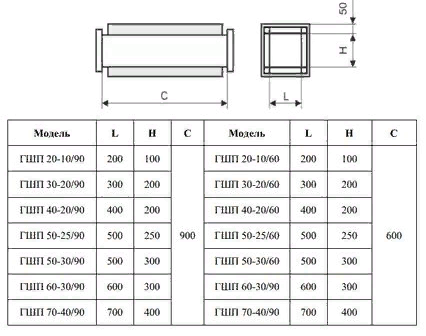 Конструктивно глушитель шума представляет собой два короба, вставленных один в другой, могут быть круглого (ГШК) и прямоугольного (ГШП) сечения. Между коробами размещен звукопоглощающий материал. Внутренняя часть перфорирована. Материалом изготовления служит оцинкованная сталь. В составе звукопоглощающего материала – пожаробезопасное супертонкое волокно. Предназначены для использования в среде, не содержащей радиоактивные и взрывоопасные смеси. Глушители шума монтируются на воздуховоды, а также могут соединяться между собой.