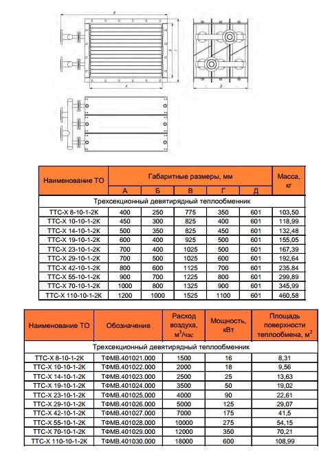 Термальные теплообменники для прямоугольных каналов, предназначены для подогрева воздуха и других невзрывоопасных газовых смесей, не содержащих липких веществ, волокнистых и абразивных материалов, с содержанием пыли и других твердых примесей не более 100мг/м3.